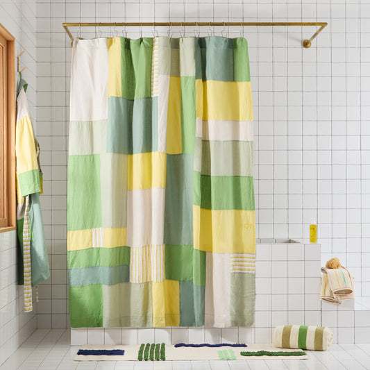 End Bits Linen Shower Curtain in Kiwi