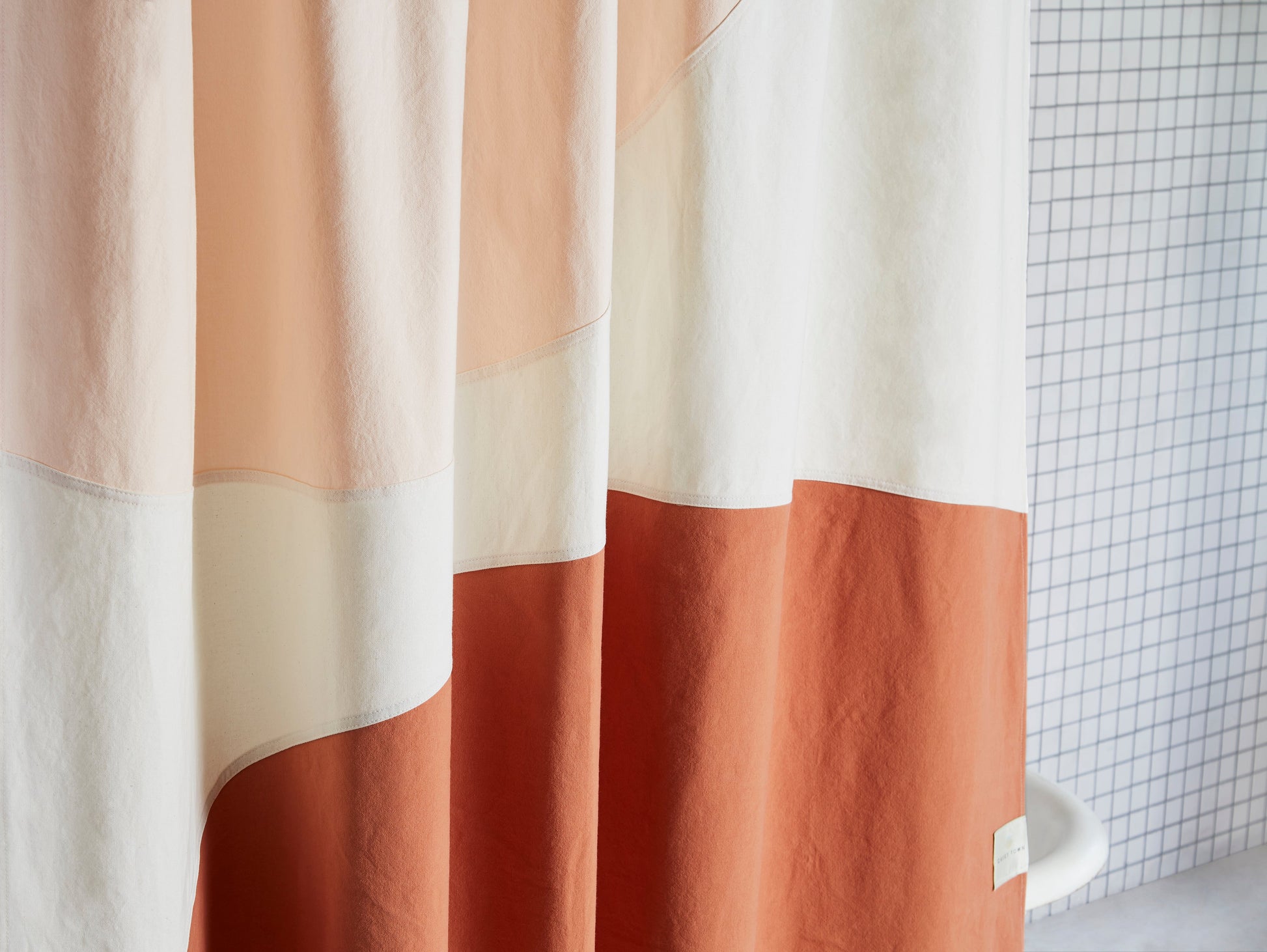 "Brings an edgy splash of color to your bathroom in the form of a brightly hued, transparent shower curtain. It can be used alone or as a liner with a fabric shower curtain."