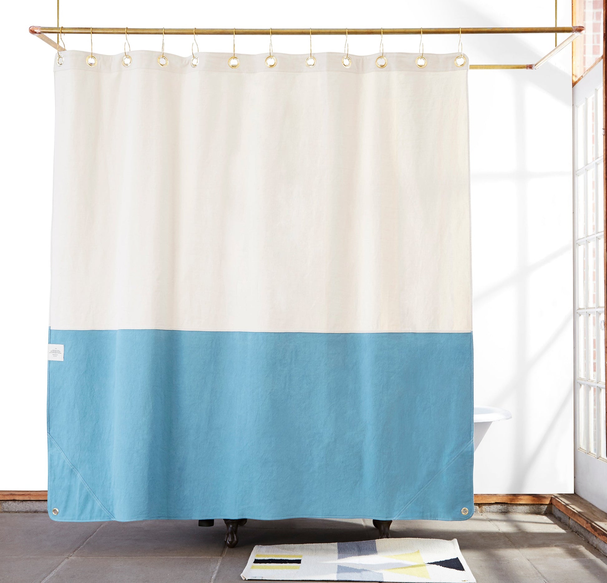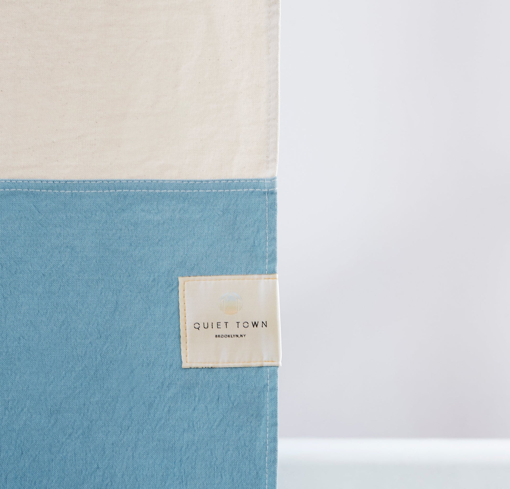 "It’s hand-sewn with durable denim hemming and features stylistic rounded corners. The top features metal grommets for hanging with hooks on your curtain rod."