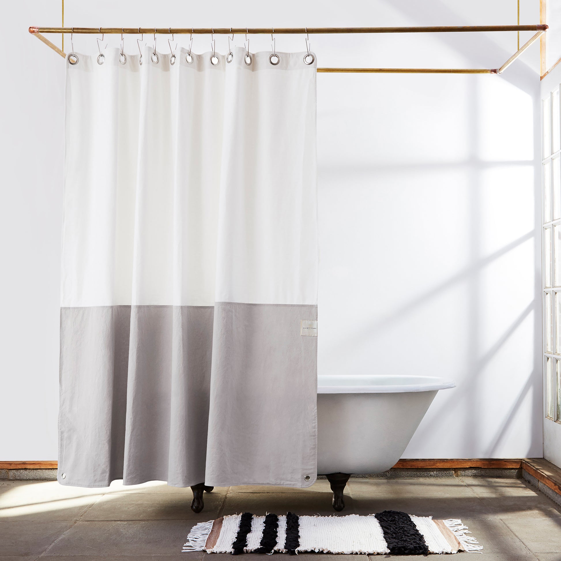 "It’s hand-sewn with durable denim hemming and features stylistic rounded corners. The top features metal grommets for hanging with hooks on your curtain rod."