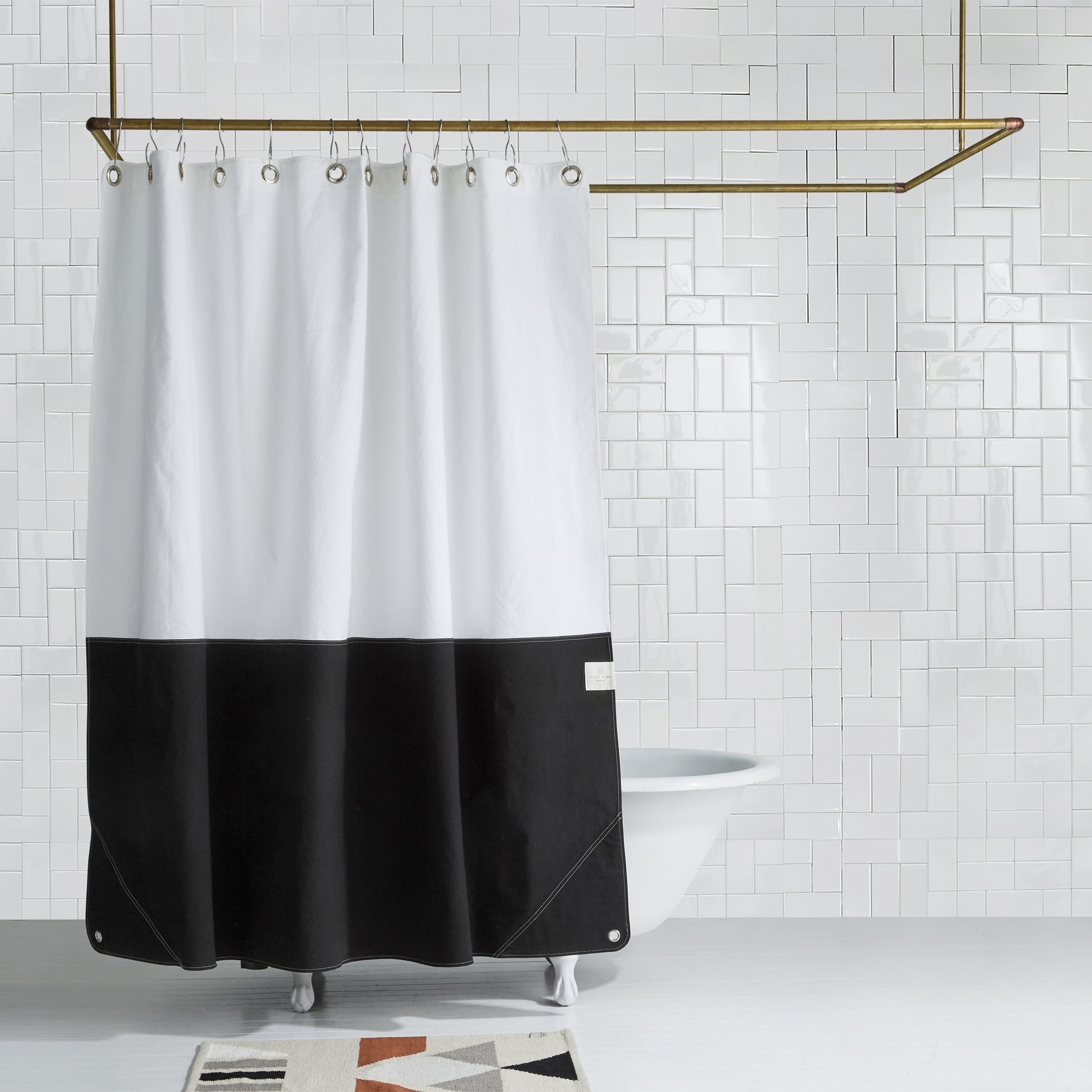 "It’s hand-sewn with durable denim hemming and features stylistic rounded corners. The top features metal grommets for hanging with hooks on your curtain rod."